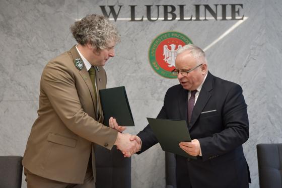 Umowę trójstronną podpisali Rektor UP w Lublinie, prof. dr hab. Krzysztof Kowalczyk, Nadleśniczy Nadleśnictwa Rudnik, Andrzej Tofilski i właściciel fermy jeleniowatych Marek Sławiński.
