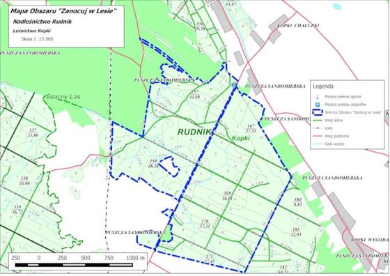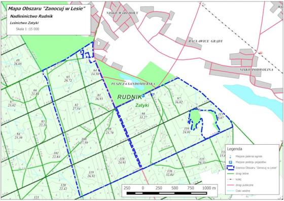 Nadleśnictwo Rudnik przystąpiło do Programu „Zanocuj w lesie”, który powstał w ramach kontynuacji założeń zawartych w ogólnopolskim pilotażu udostępnienia obszarów leśnych celem uprawiania aktywności typu bushcraft i surwiwal. Po ponad rocznym okresie trwania pilotażu, ankietowaniu osób korzystających z obszarów pilotażowych, zarządców terenu, rozmowach ze środowiskiem bushcraftowym i surwiwalowym wykiełkował pomysł przekształcenia pilotażu w stały program pn. „Zanocuj w lesie”. Nadleśnictwo Rudnik wyznaczyło trzy atrakcyjne obszary do zanocowania bezpośrednio w lesie: