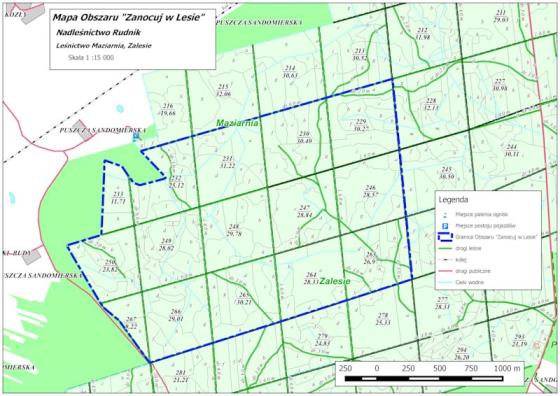 informacjami, gdzie wyznaczone są miejsca do rozpalenia ogniska. Nadleśnictwo zapewnia miejsca do bezpiecznego rozpalania ogniska, jednak w drewno należy zaopatrzyć się we własnym zakresie.